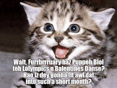 OK, as I am not up to politics nor news events, what else is there to post? Well, I could put links to some good songs, but I'd have to hunt the links off You Tube. Oh, hey, tomorrow is Caturday…….so, as a pre Caturday and my first post since the last day of 2017…..LOL Cats it is. Also, I see the winter olympics are going to take place soon. Yeah, I know I used a lower case"o" in the word olympics. Big damn deal, I don't watch either the winter nor the summer 'games'. Too many professionals entered in both of them. Any who, I have a few Olympic LOL cats for you. So, away we go……..